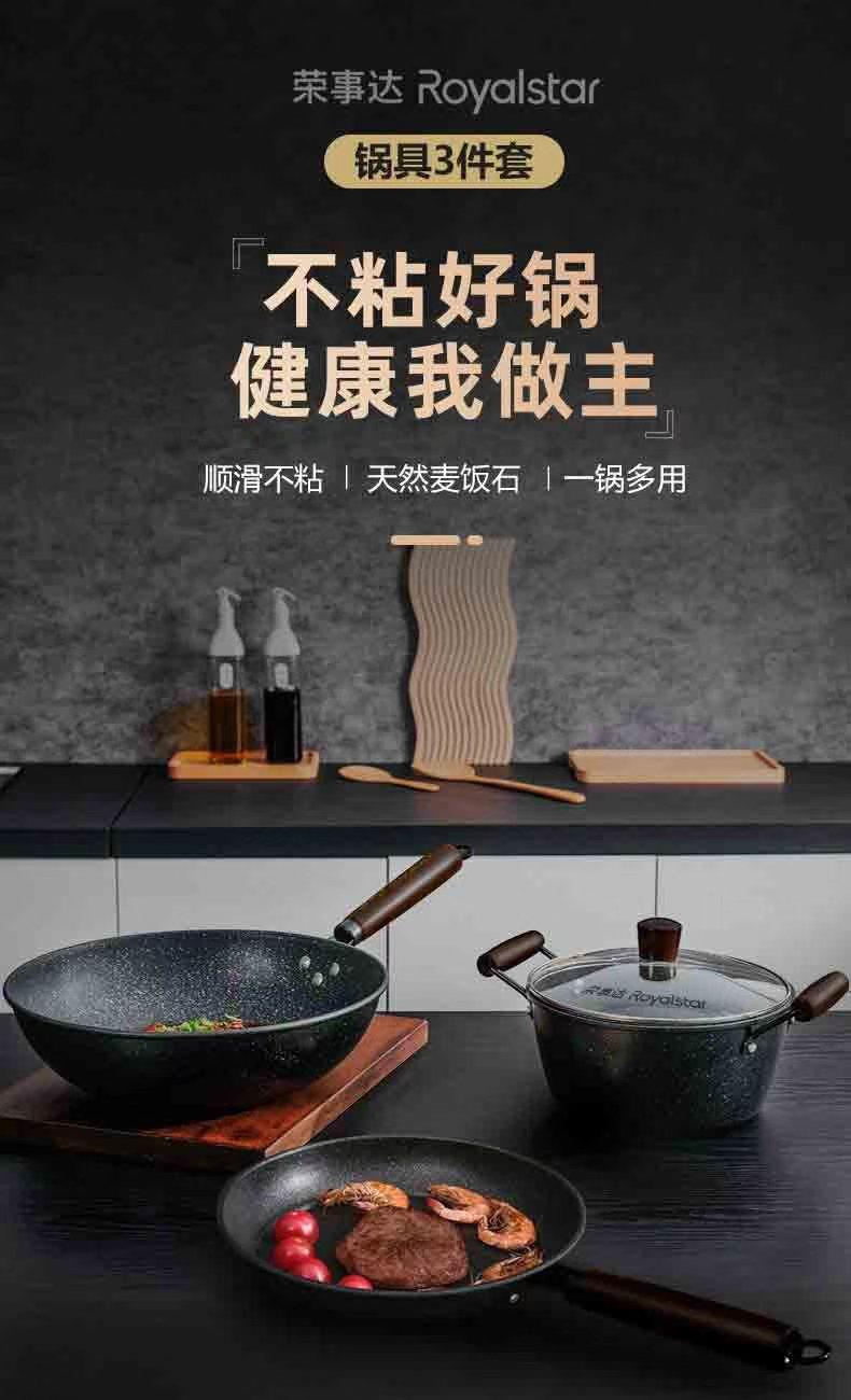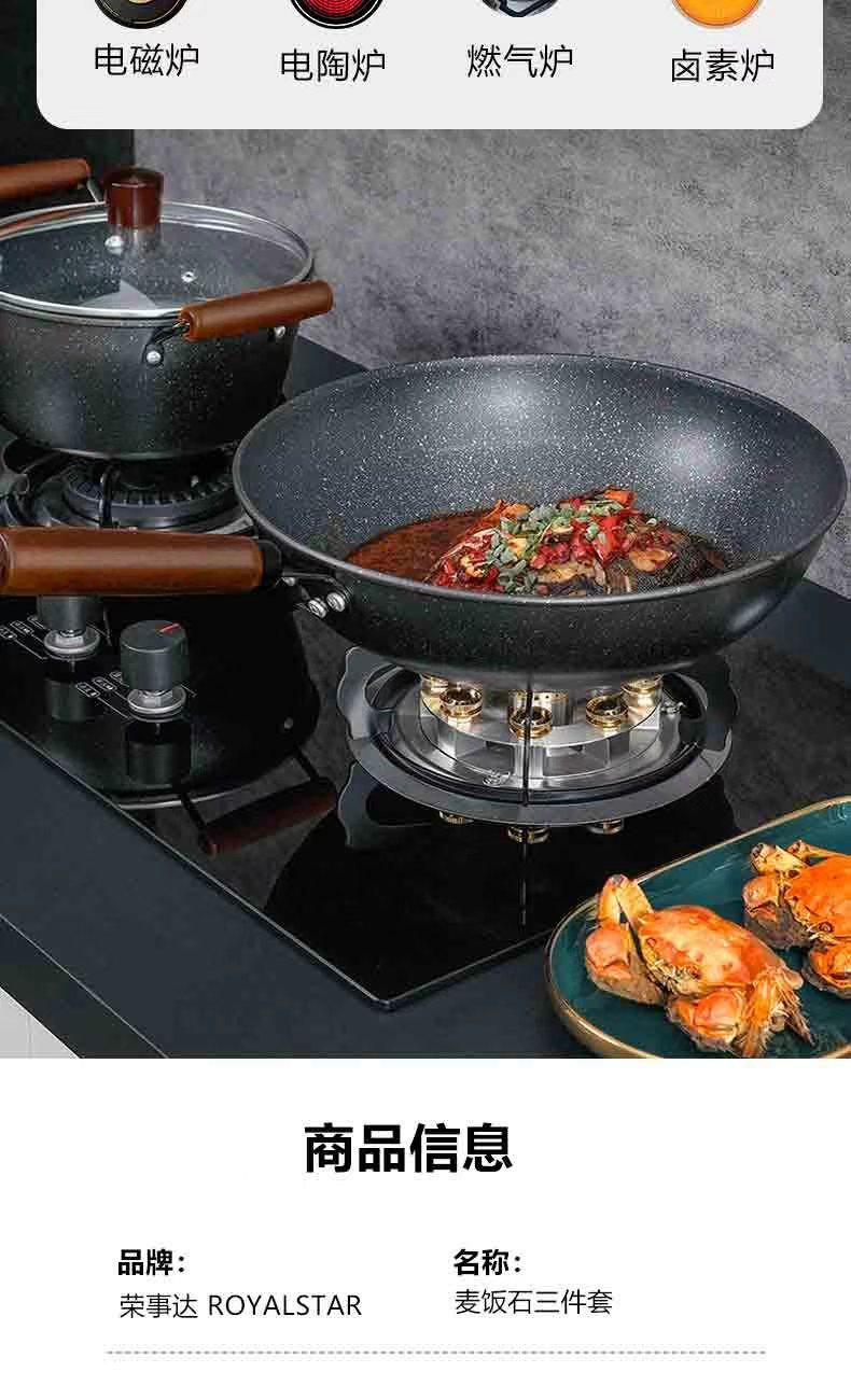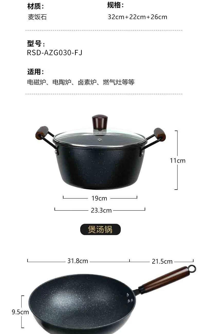 榮事達(dá)麥飯石烹煮鍋具三件套RSD-AZG030-FJ